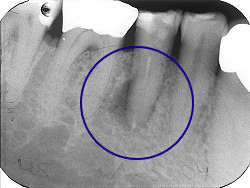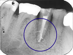 Auch für den Laien ist unschwer der Unterschied zwischen den zwei Wurzelkanalfüllungen erkennbar, die von zwei verschiedenen Zahnärzten am selben Patienten nacheinander durchgeführt wurden - zunächst ohne Erfolg, beim zweiten Mal mit: